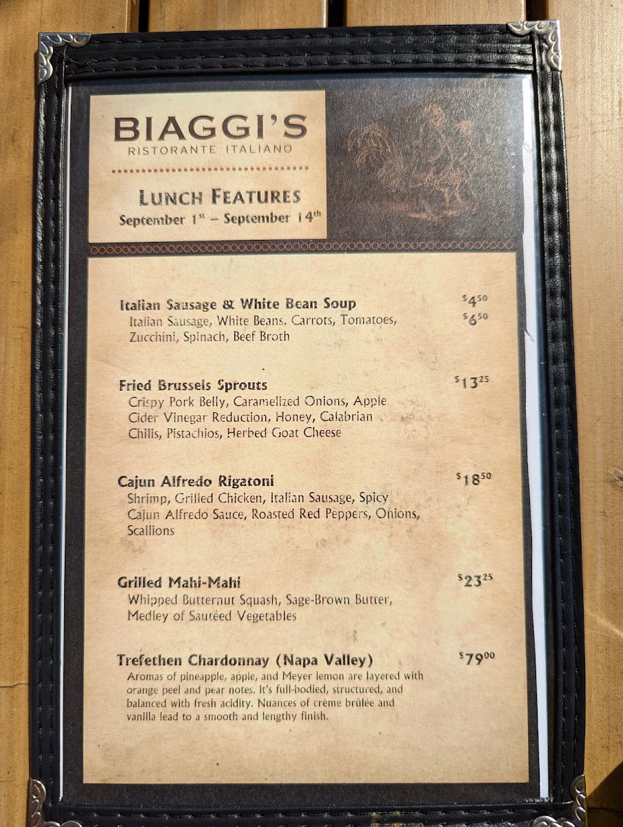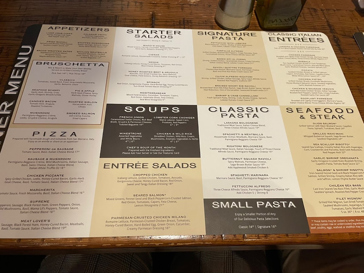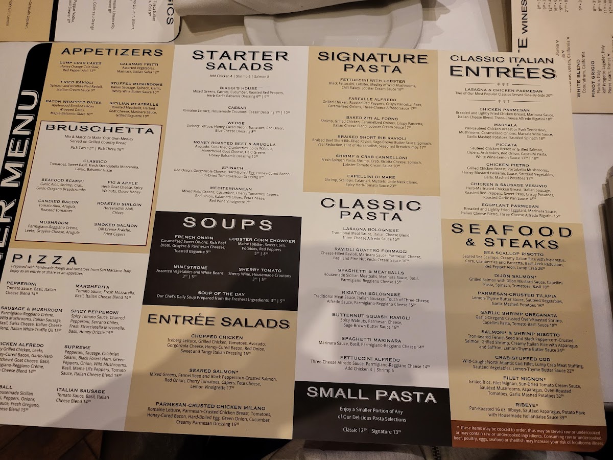 Welcome to Biaggi's, a delightful gem of Italian cuisine located in Maple Grove, MN. The menu boasts a diverse range of mouth-watering options, from gourmet pizzas like the Chicken Piccante to signature pasta dishes like the luxurious Fettuccini with Lobster. Each dish is crafted with high-quality ingredients, ensuring every bite is a taste of Italy. Seafood lovers can indulge in the Sea Scallop Risotto, a creamy delight that's hard to resist.